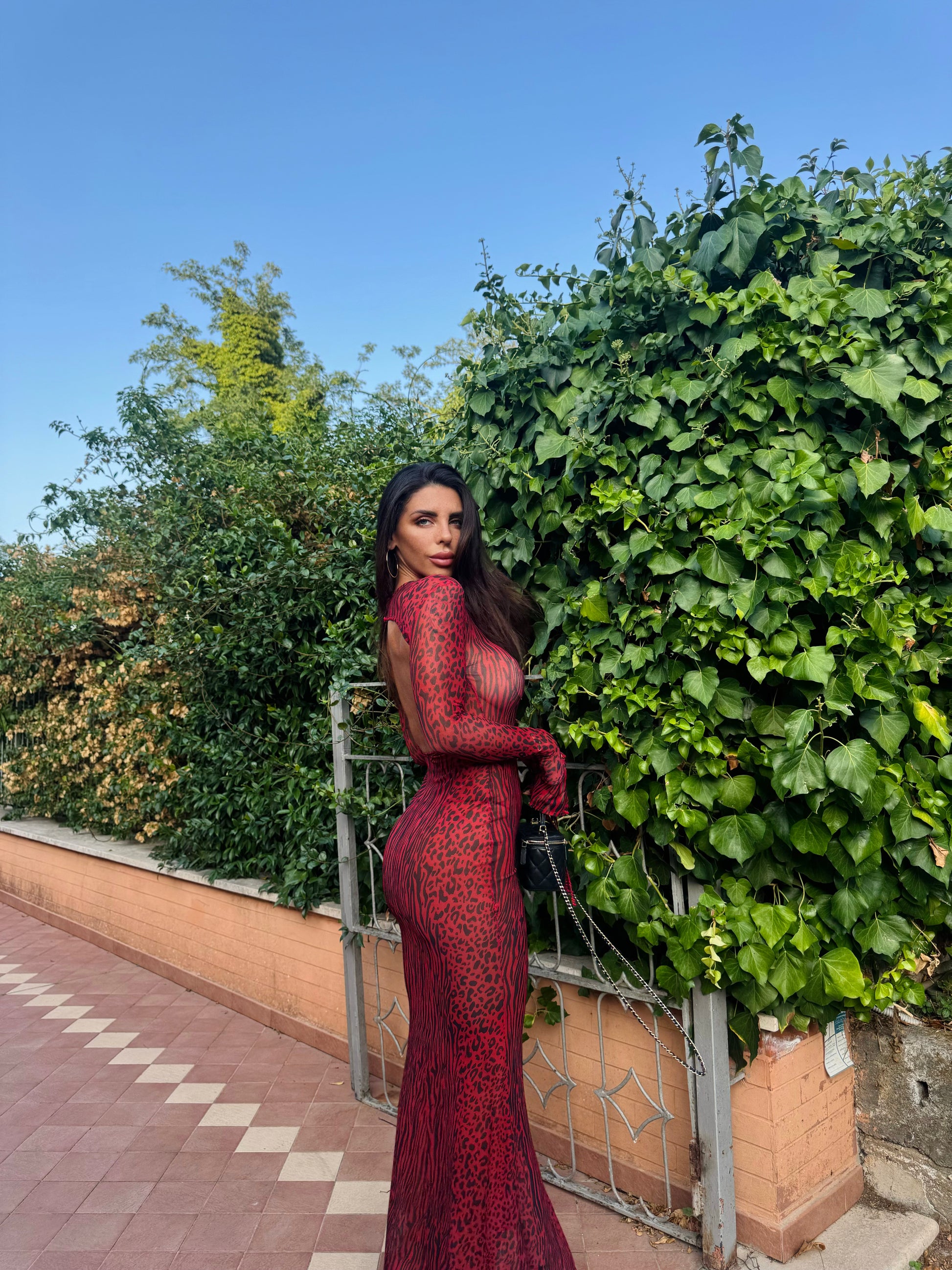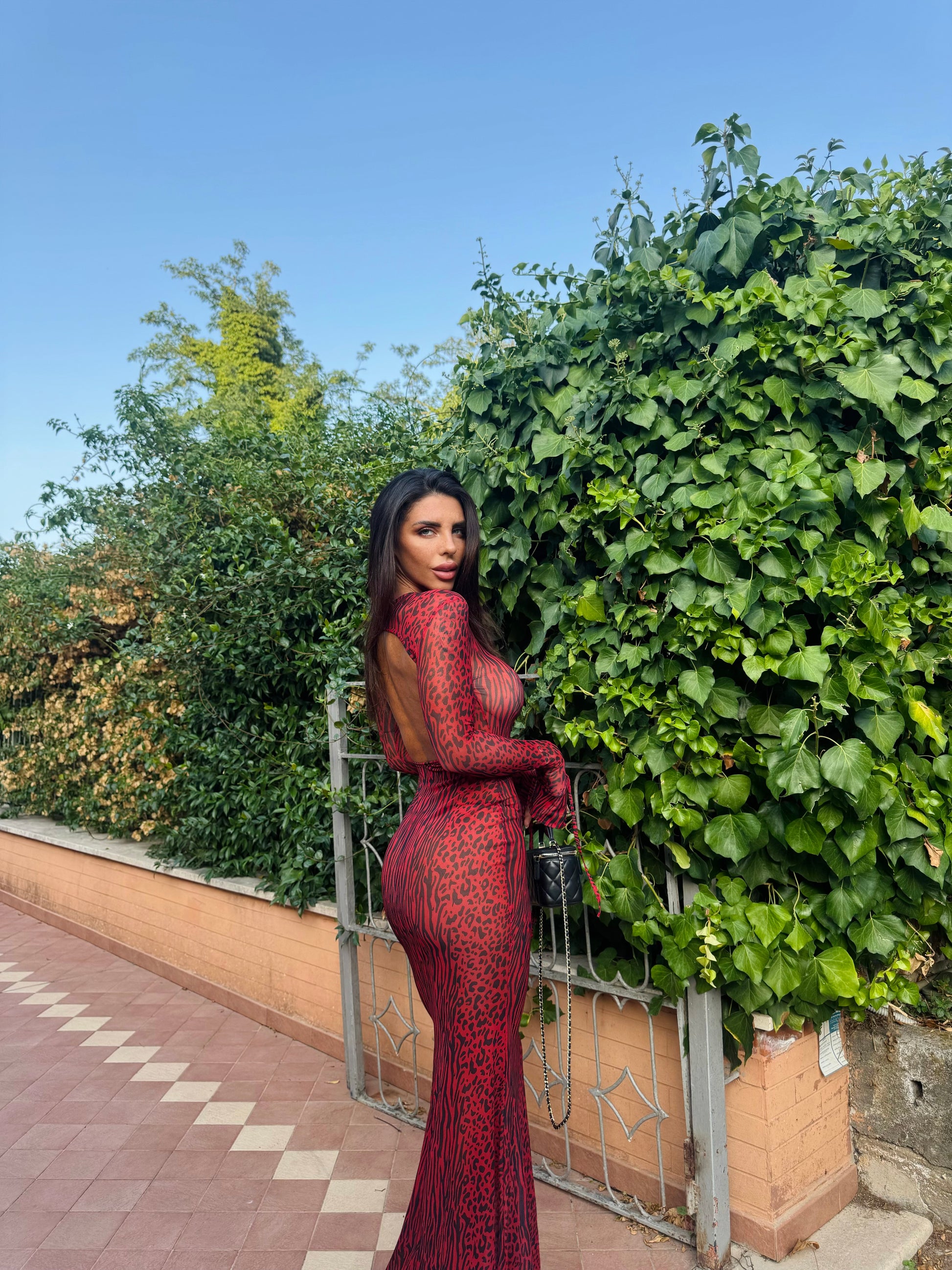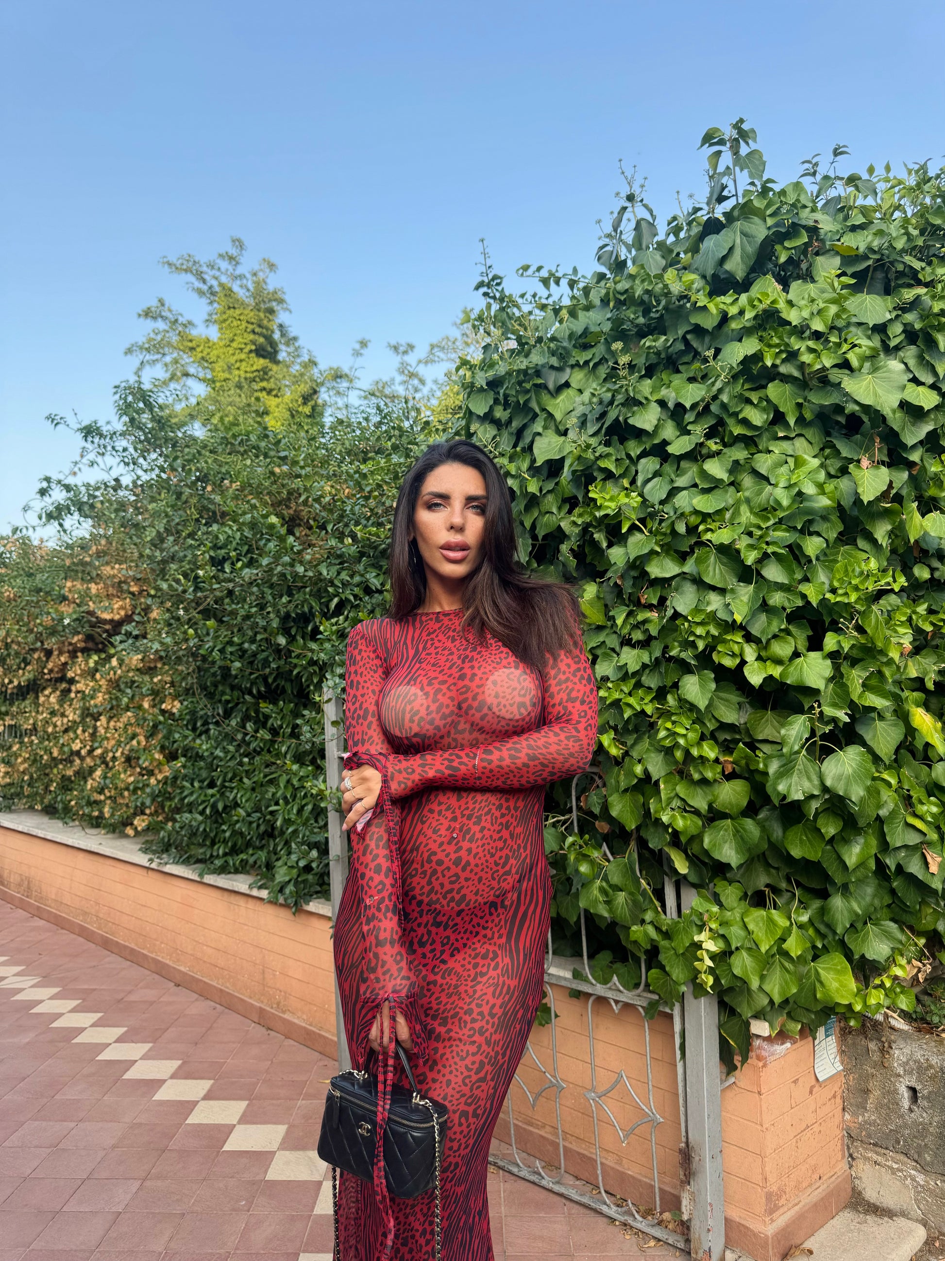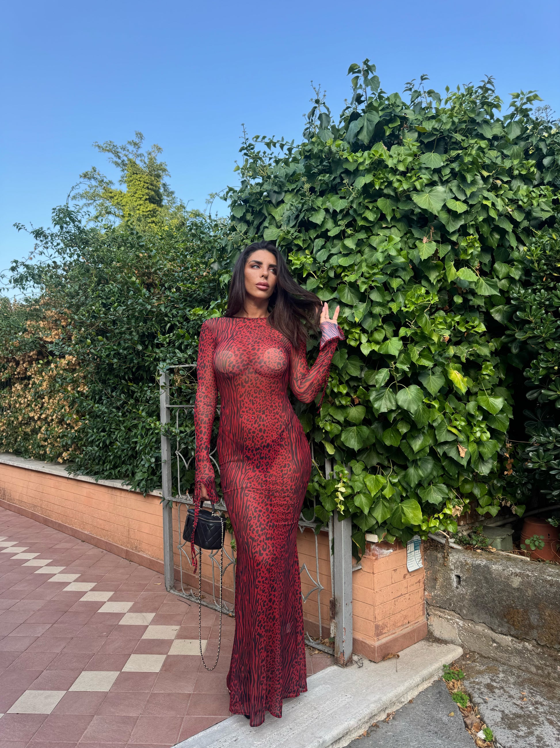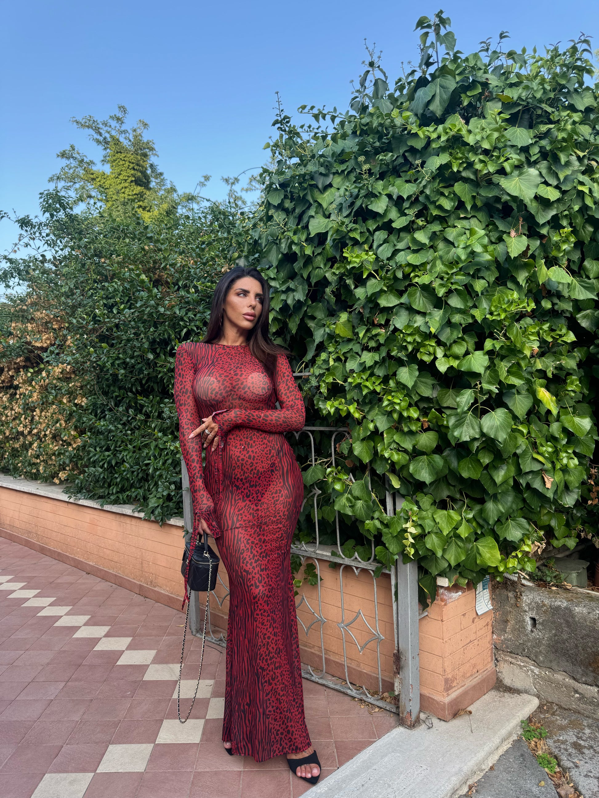 Abito in tessuto velato elasticizzato