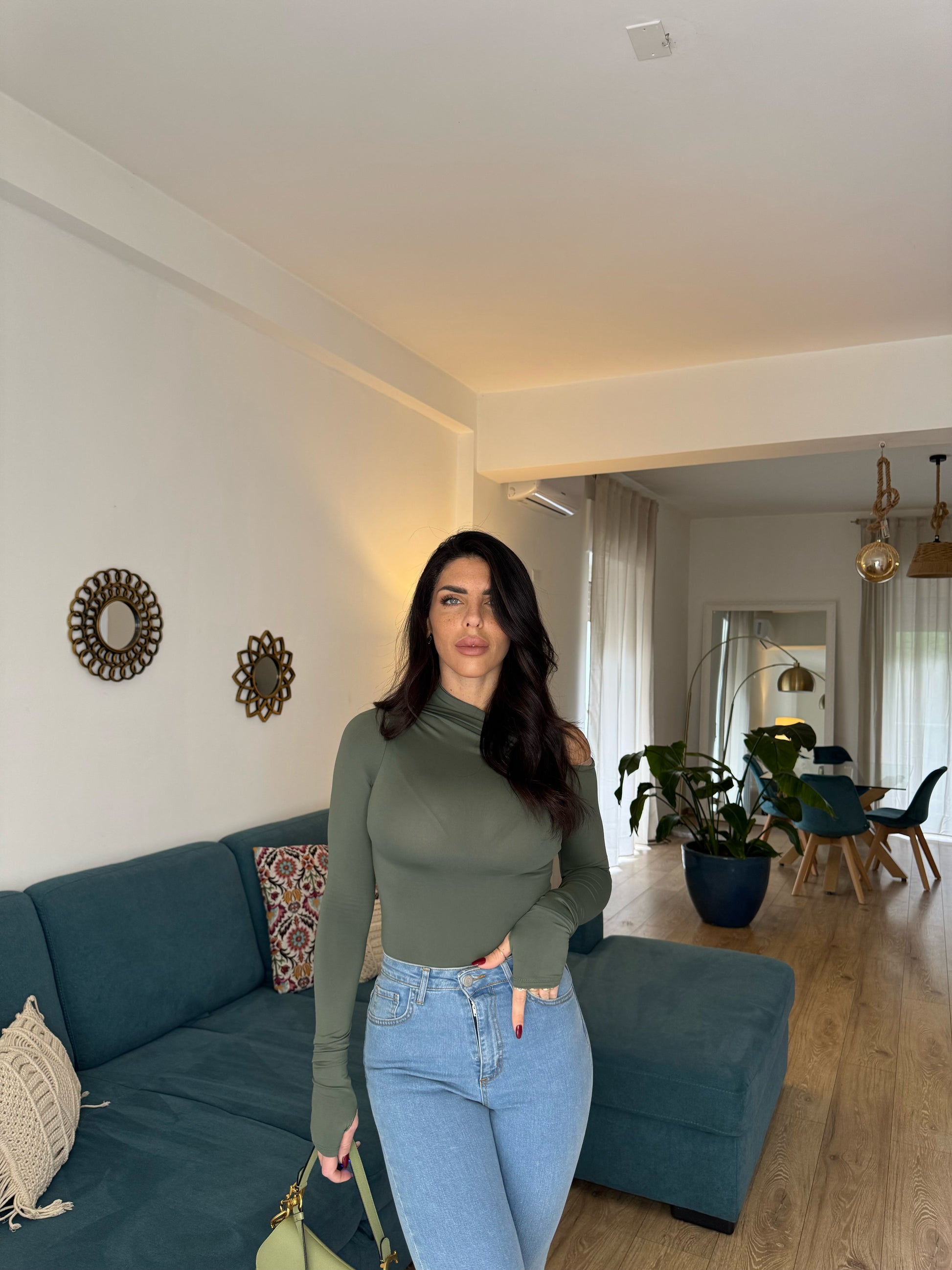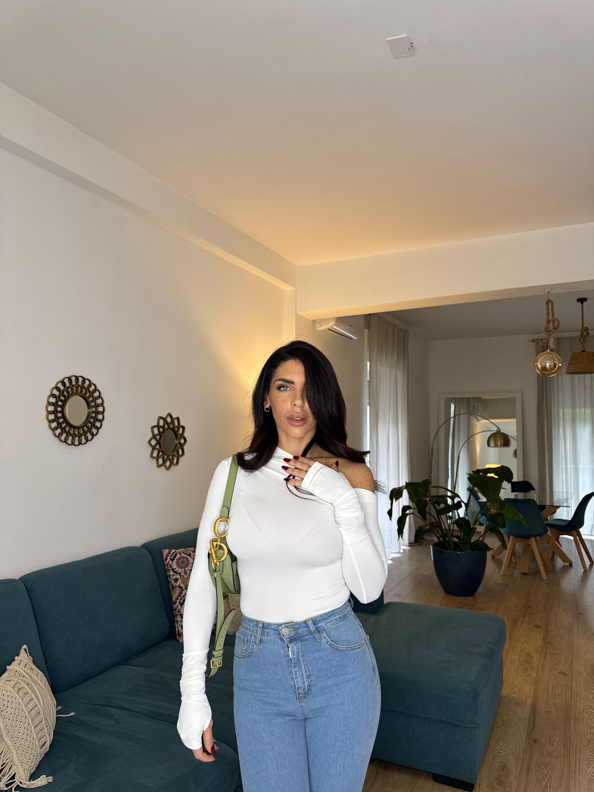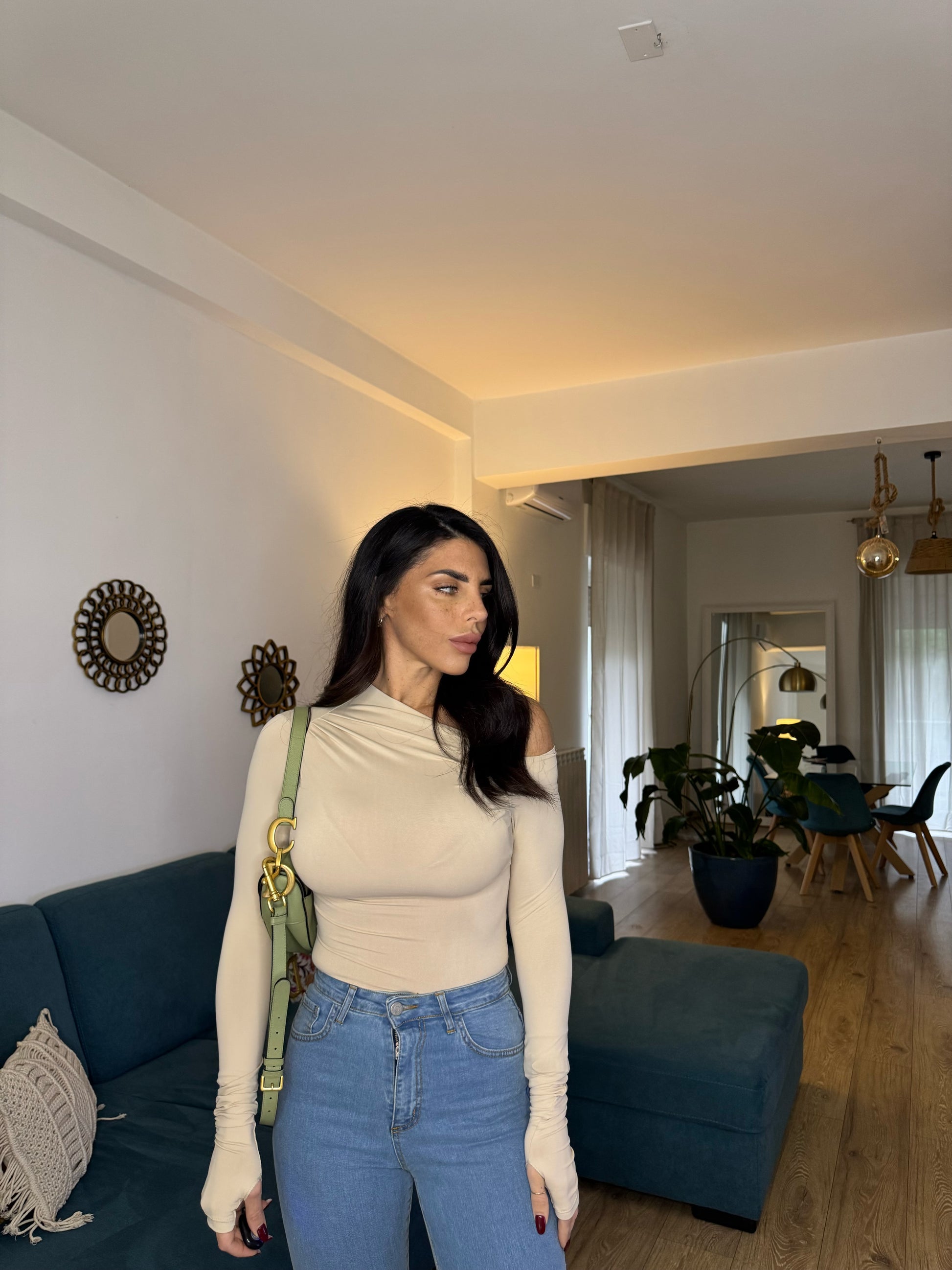 Maglia elastica monospalla con manica guanto
