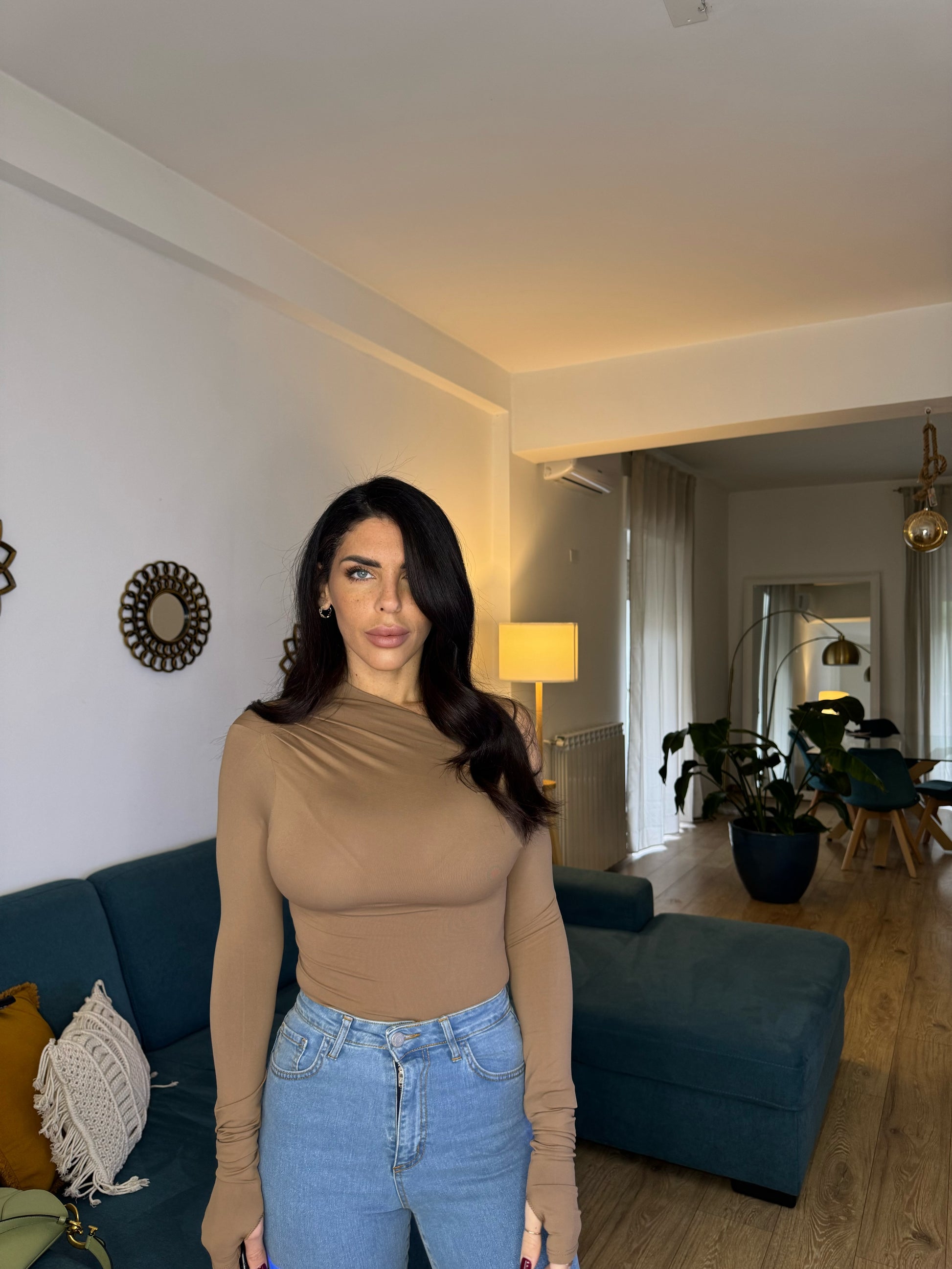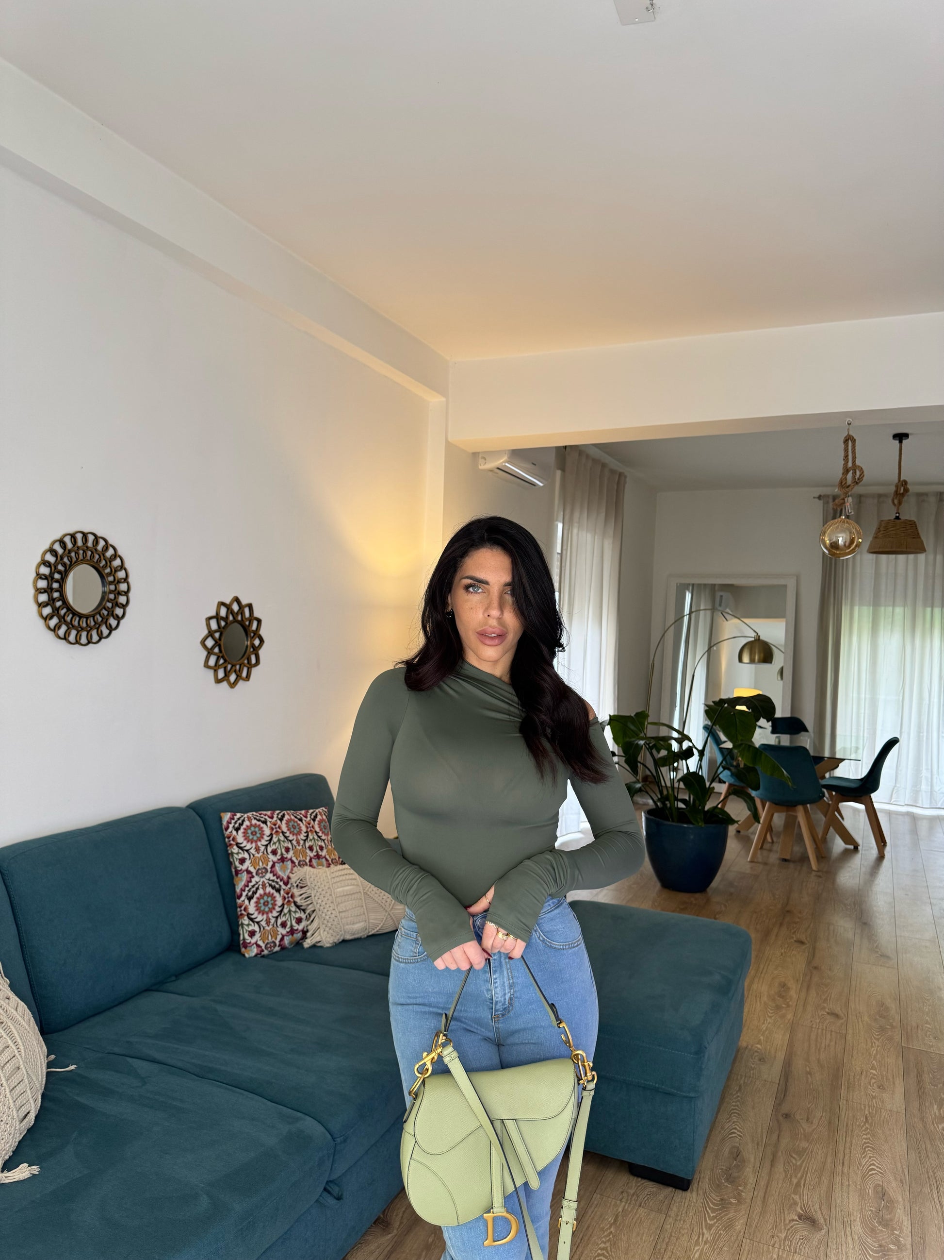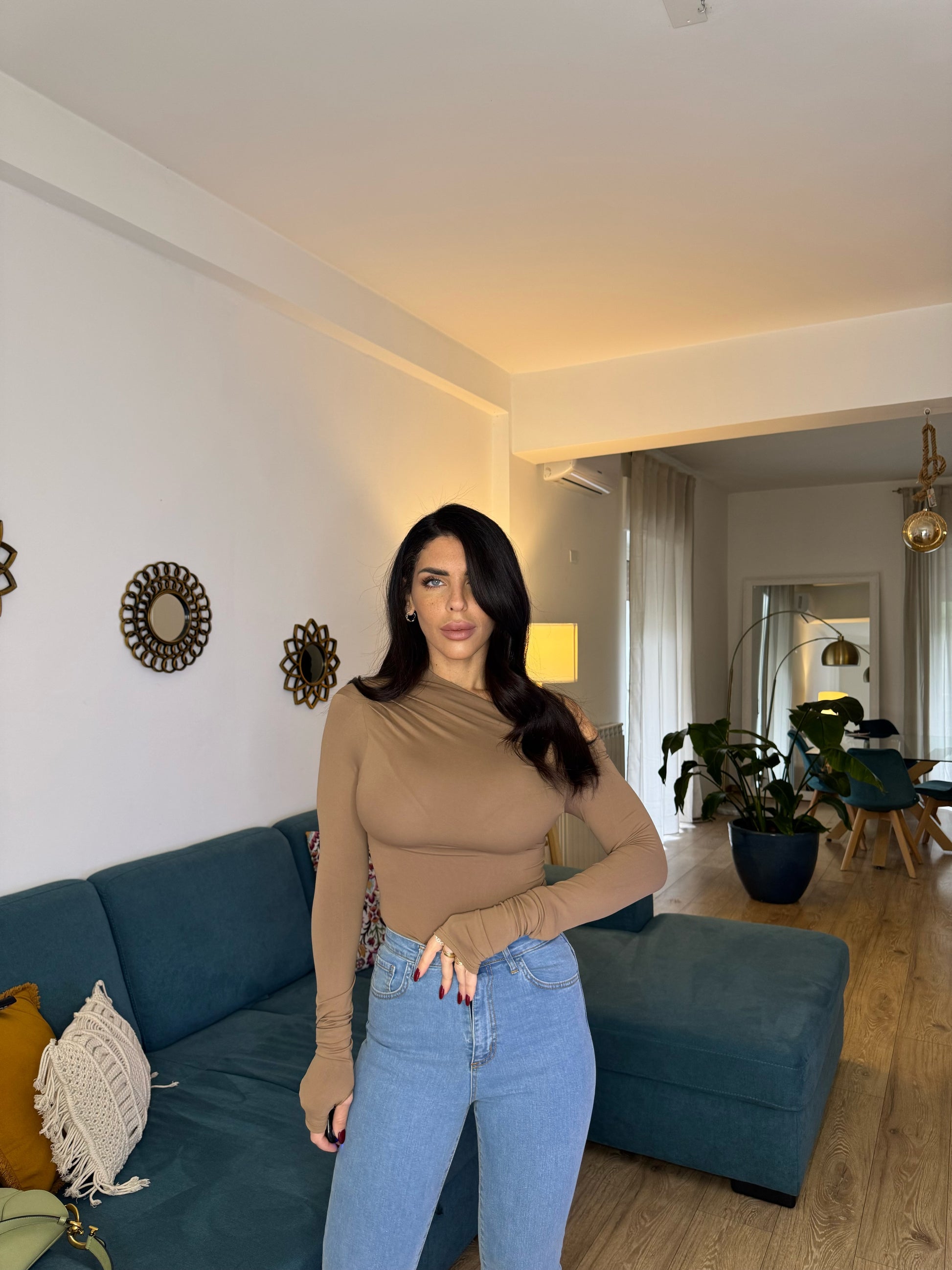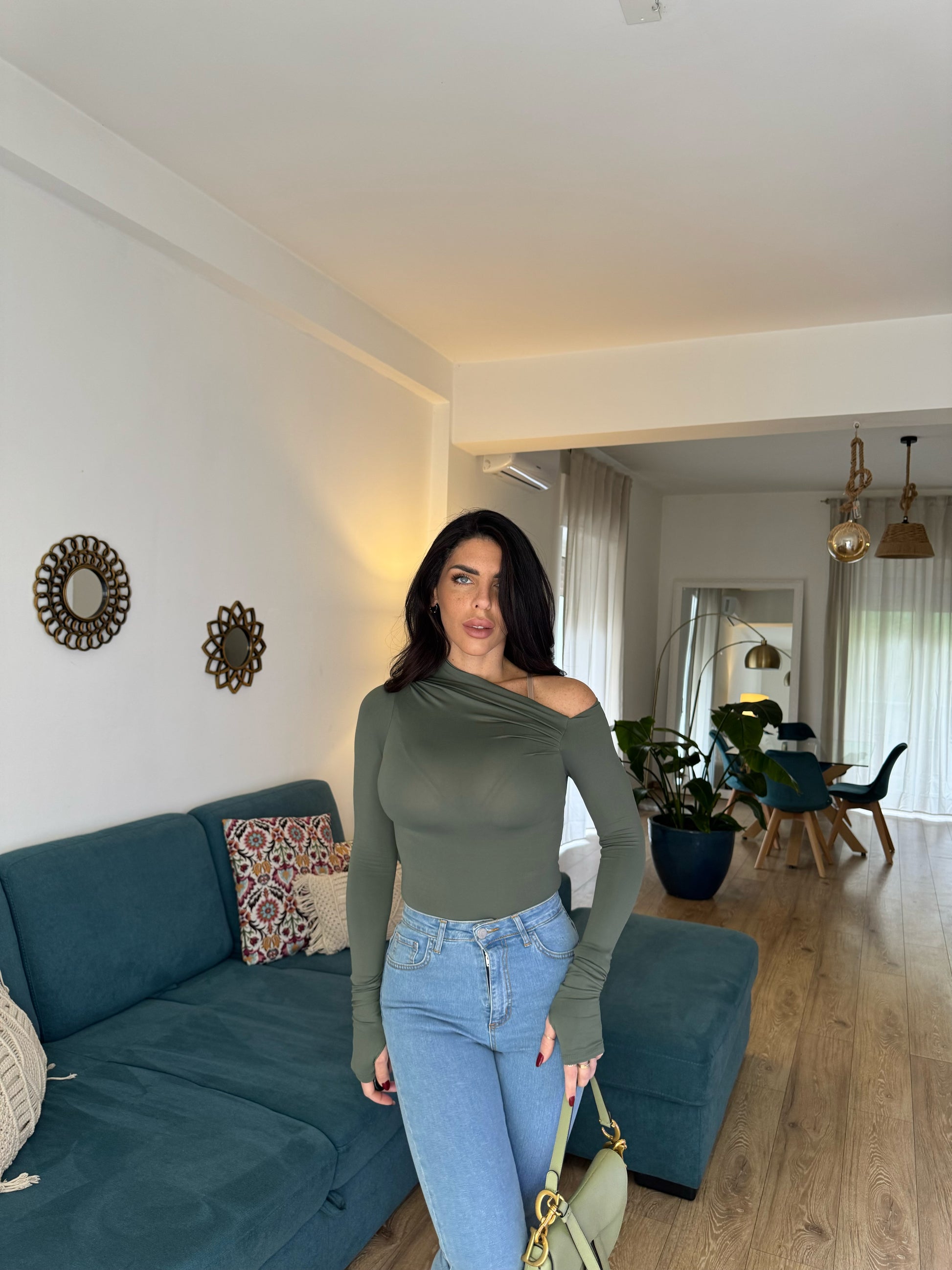 Maglia elastica monospalla con manica guanto